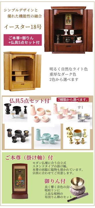 コンパクト 仏具付 仏檀セット イースター2型 モダン仏壇 18号 仏壇 (イーグルII-Z) 仏壇仏具セット WEB限定価格 ご本尊 おりん付 お仏壇 モダン 仏具付き 小型 上置 ミニ仏壇 インテリア仏壇 現代 家具調 マンション リビング おしゃれ 小さい 仏具セット付 仏壇セット